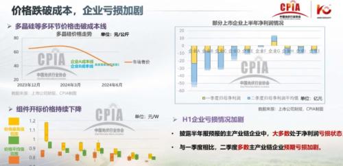 二是上游新能源制造业遭遇的困境。这一问题在风电、光伏、新型储能领域已愈发严峻,具体体现包括库存堆积、产能利用率偏低、价格战、企业业绩承压等。以光伏为例,在近期召开的光伏行业2024年上半年发展回顾与下半年形势展望研讨会上,CPIA在半年总结中列出了产业目前的几大问题,首当其冲的就是价格跌破成本,企业亏损加剧,从去年下半年到今年上半年,包括行业龙头企业在内,不少上市公司都处于净亏损状态,且亏损幅度越来越大,中小厂商情况更是尤为艰难。此外,还存在需求增速放缓、跨界玩家深陷泥潭、欧美等主流市场贸易保护加剧导致我国产品出口受阻、国内资源吃紧、分布式消纳面临市场瓶颈等诸多问题。钛媒体APP也了解到,这是CPIA历次进行半年度年度总结时,列出问题尤其多的一次,足见行业的困难与焦虑。而类似的问题在起步更早的风电产业中早已出现,近两年该行业也一直在弱周期中挣扎。被普遍视为“新风口”的新型储能也快速“碰壁”,一位锂电储能企业高管曾对钛媒体APP表示,储能大概率会复刻光伏的发展路径,好的坏的都有,而行业目前也进入了“淘汰赛”,预计年内就会有大批企业被淘汰出局。同时,上游的波动、低价战并未必能利好下游电站运营、发电环节,比如,上游情况不好时,下游拿到的产品质量往往就得不到有效保障,供应情况出现大起大落后也会影响全产业链的高质量发展。今年以来,不仅行业企业数次呼吁停止“内卷”,走出“价格战泥潭”,主管单位也进行了指导和调节,工业和信息化部二季度、三季度针对锂电、光伏均出台过行业规范或指导意见,引导企业减少单纯扩大产能的制造项目,加强技术创新、提高产品质量、降低生产成本;