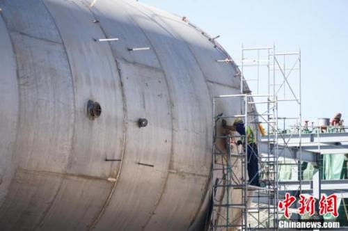 工人在世界最大规模液态空气储能项目现场施工。
