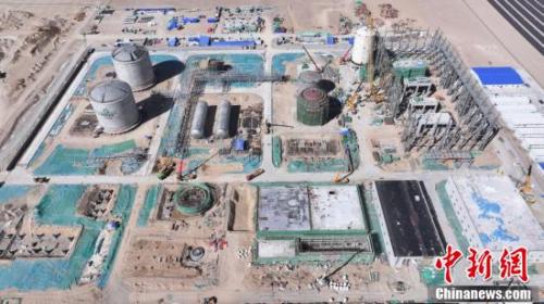 航拍世界最大规模液态空气储能项目施工现场。(无人机照片)