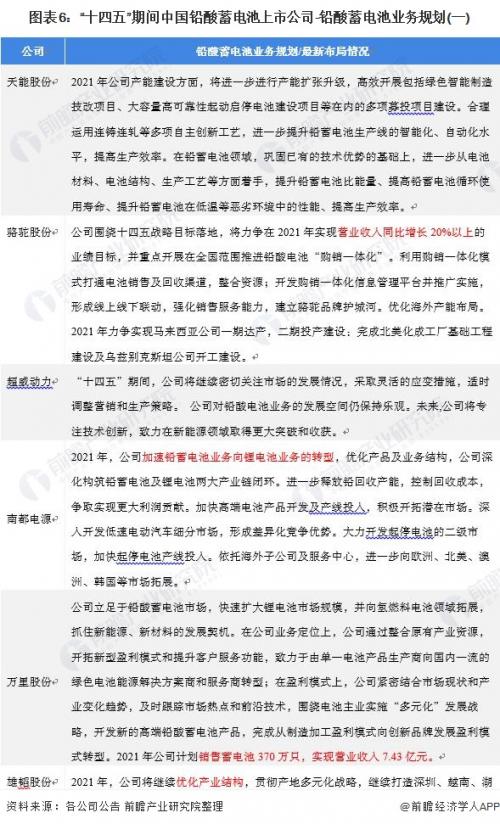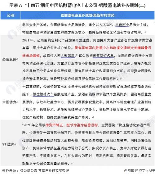 铅酸蓄电池产业代表性企业业务规划