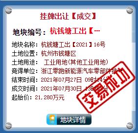 7月30日,零跑汽车斥资2.13亿元摘下杭州钱塘区40公顷(合600亩)工业用地,至此,第二工厂初步落定。按照规划,零跑汽车在钱塘新区建设年产20万台新能源汽车项目,从事新能源汽车的研发、生产与销售。项目总投资40亿元,其中固定资产投资24.42亿元,预计2023年竣工,建成后年产值达60亿元,年税收不低于2.4亿元。