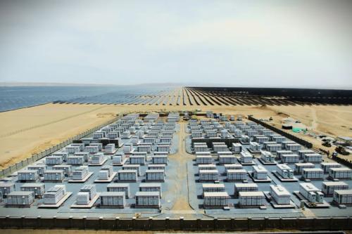2025年4月16日,国能大柴旦100万千瓦风光储项目配套储能电站航拍图。截至4月30日,该项目部分线路已成功实现投产运行,项目总装机容量200兆瓦/800兆瓦时,包含集中式和高压直挂式磷酸铁锂电池、钠离子电池、半固态磷酸锂电池、钛酸锂电池、全钒液流、超级电容、磁悬浮真空飞轮储能等8种储能类型,为目前国内储能类型最多、涵盖主流电化学储能类型最全的储能电站。