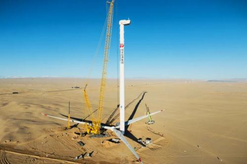 2025年4月30日,国能大柴旦100万千瓦风光储项目30万千瓦风电项目最后一台风机吊装完成。该项目采用大容量风电机组,单机功率达6.25兆瓦,是青海省目前在建单机容量最大的风电工程。