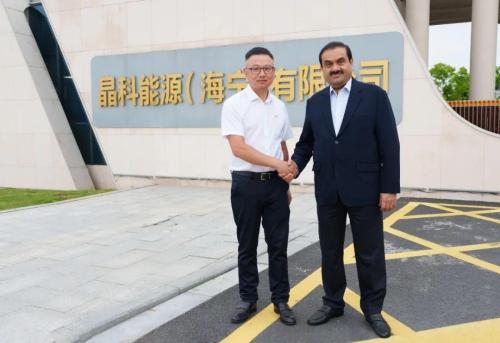 近日,印度Adani集团(Adani Group)董事长Gautam Adani访问了晶科能源的全球智能制造基地,并与晶科能源董事长李仙德举行了高层会谈。