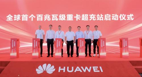 基于华为兆瓦超充打造的全球首个百兆瓦级重卡超充站启动仪式