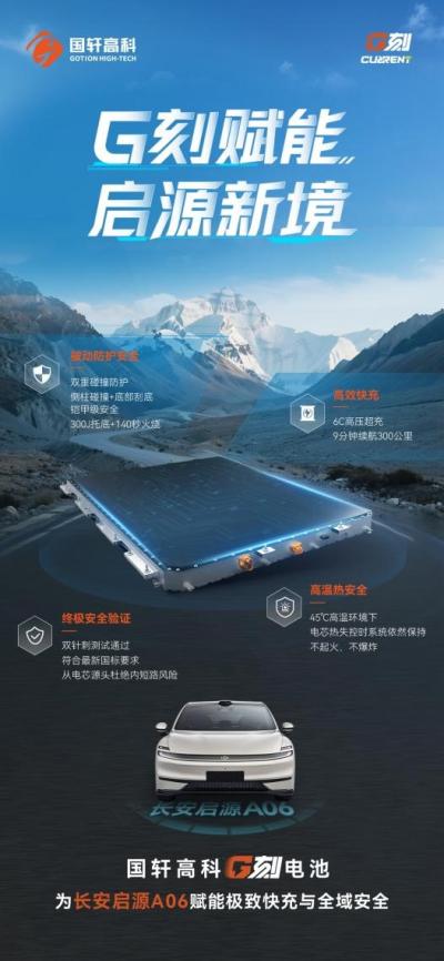 9月28日,国轩高科G刻电池配套长安启源A06纯电轿车正式上市,作为具备6C超快充技术的标杆性动力解决方案,G刻电池以"超快充、长寿命、高安全"为核心优势,助力A06实现充电效率与续航能力的双重突破。