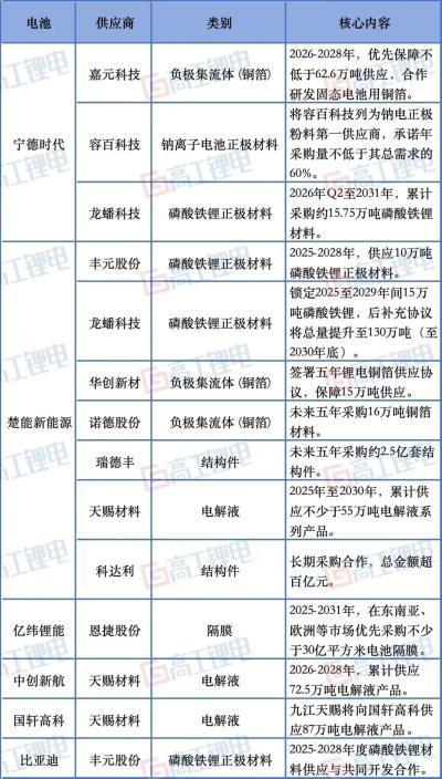 一方面,出口减税政策预期下的“抢出口”并未如期发生,终端并未形成必须接受涨价的紧迫感;另一方面,产业链近期密集签订的保供协议,仍主要集中在与刚性资源高度相关的环节,如磷酸铁锂、电解液、铜箔等,而非电芯本身。