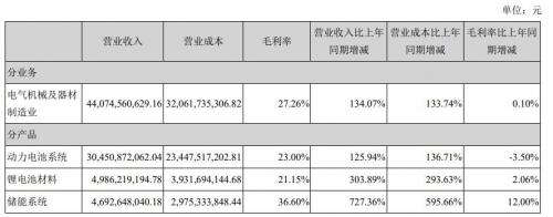 根据财报显示,公司实现营业收入440.75亿元,同比增长134.07%;归属于上市公司股东的净利润44.84亿元,同比增长131.45%。