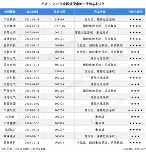 行业主要上市公司:目前国内储能电池产业的上市公司主要有天能股份(688819);阳光能源(0757.HK);科陆电子(002121);海博思创(300525);猛狮科技(002684);南都电源(300068);国轩高科(002074);智光电气(002169);国电南瑞(600406);派能科技(688063);中天科技(600522);中恒电气(002364);平高电气(600312);许继电气(000400);长园集团(600525);宁德时代(300750);比亚迪(002594);亿纬锂能(300014);欣旺达(300207);百利科技(603959);赣锋锂业(002460)。