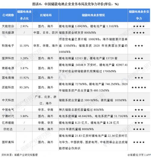 4、中国储能电池行业企业布局及竞争力评价