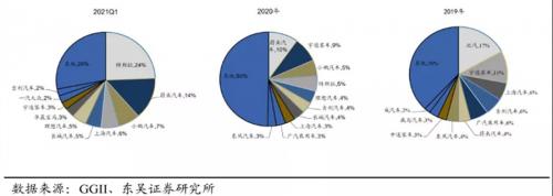 2021Q1,客户主要为特斯拉(1/4)+新势力(1/4)+传统主机厂。