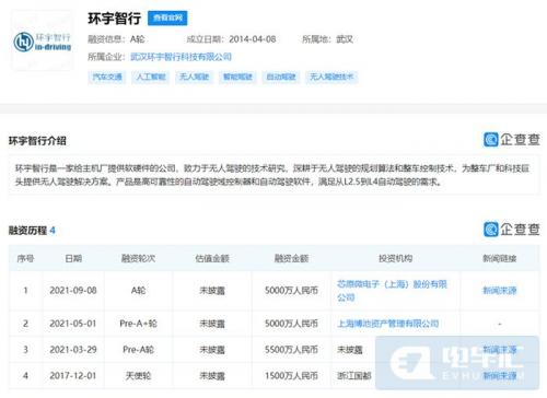 9月8日,企查查信息显示,环宇智行已完成5000万元A轮融资,本轮融资由芯原微电子(上海)股份有限公司投资,资金将主要用于提升产品算力及布局芯片研发等。资料显示,环宇智行在今年3月和5月分别完成了Pre-A轮和Pre-A+轮融资,两轮融资分别由翊宙资本和上海博池投资,累计融资金额过亿元。