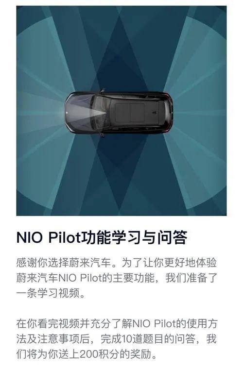 好在,值得庆幸的是,本次事故发生后仅10天,蔚来官方向全体车主推送了关于NIO Pilot功能学习与问答,包括一段长达6分钟的学习视频以及10道问答题。内容主要包括NIO Pilot的主要功能和注意事项,并明确指出NIO Pilot是辅助驾驶并非自动驾驶。在驾驶过程中,用户才是驾驶掌控的主体,NIO Pilot只是起辅助作用。