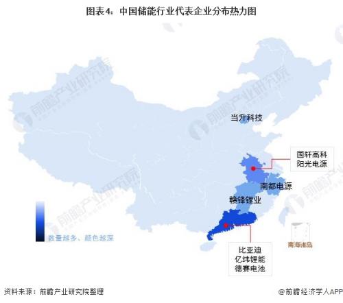 从代表性企业分布来看,同样是广东省代表性企业较多,如比亚迪、亿纬锂能、德赛电池等;同时安徽、江西、浙江、北京也有较多代表企业,如国轩高科、阳光电源、赣锋锂业等。