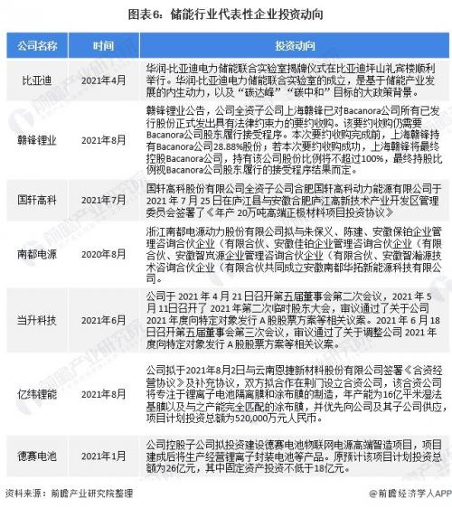 2020年以来,储能行业代表性企业的投资动向主要包括收购公司拓展业务、通过对子公司增资的方式投资储能项目。储能行业代表性企业最新投资动向如下: