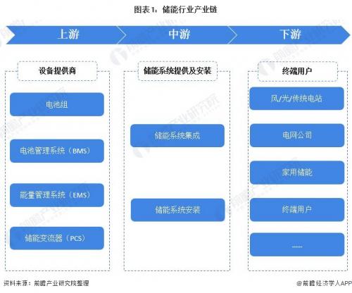 储能产业链上游为电池、电池管理、能量管理系统以及储能变流器供应商;中游为储能系统集成商、安装商以及终端用户等;下游为终端应用客户,包括风/光/传统电站、电网公司、家用储能等。
