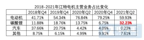 近期根据江特电机公告披露,2020年12月开始,碳酸锂业务外部环境持续高景气度,由于中下游储能和终端应用的需求不断增长,产品的销售价格同比有较大幅度上涨,公司碳酸锂业务产销量较上年同期大幅增长,营业收入及盈利能力也随之受益。半年报显示,江特电机碳酸锂收入近4.4亿元,收入占比提升至32.33%,同比增长2.5倍。