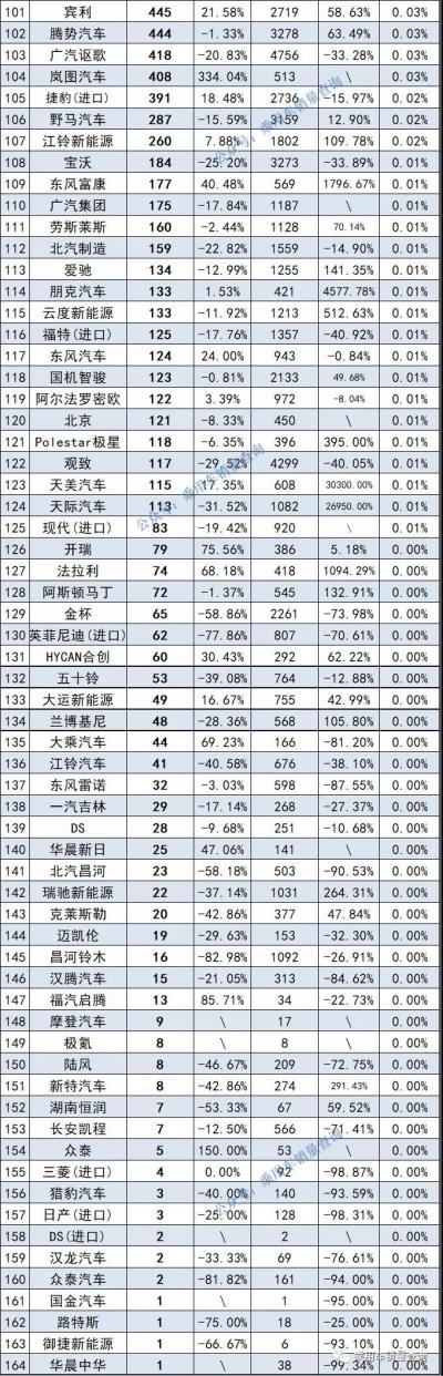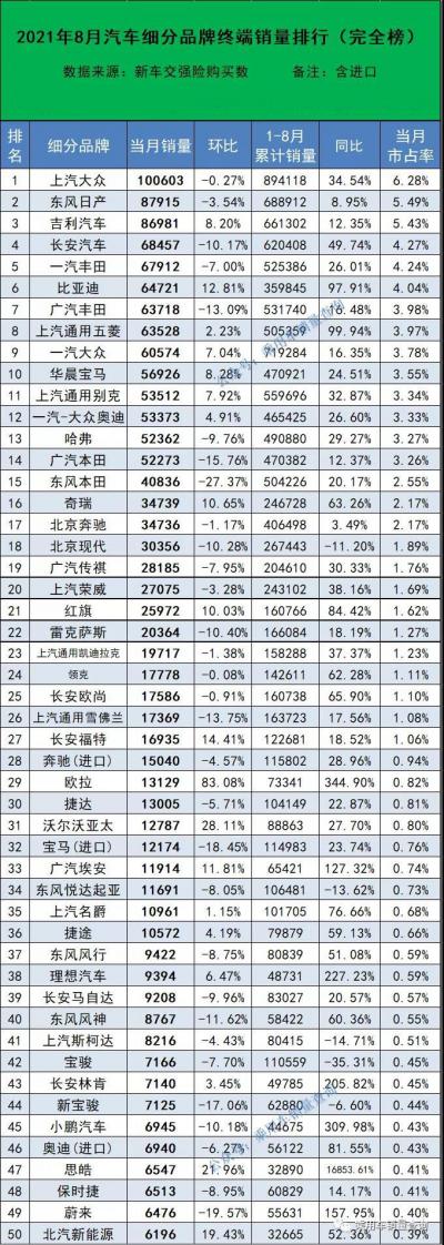 以上是8月终端销量品牌排行榜,数据来源新车交强险购买数,你的爱车品牌上榜了,欢迎留言分享。