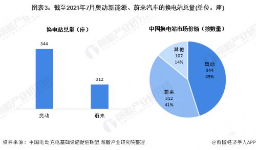 从换电站数量来看,截至2021年7月,奥动新能源的换电站数量领先于蔚来汽车,达344座,占全国换电站市场份额的45%。