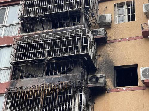 这栋五层高的建筑,就是本周一凌晨3点20分,北京通州区发生火灾的居民楼。外表面能够清晰地看到火焰从三楼燃烧到五楼的痕迹。楼的四层、五层是复式结构,住着遇难的一家五口,他们当时正在五层卧室休息。火灾过后,屋内已经成为废墟,两层之间唯一能逃生的木楼梯,也被完全烧毁。