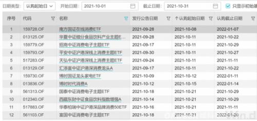 此外,南方国证在线消费ETF于10月8日开始募集;博时基金分别于10月12日和10月15日发行了博时国证龙头家电ETF、博时时代消费两只消费主题基金;华泰柏瑞中证沪港深品牌消费ETF、西藏东财中证食品饮料指数增强、国泰中证消费电子、富国中证消费电子均于10月21日开始发行。