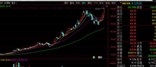 今年4月,永太科技股价由8元左右起步,涨至如今的70元,涨幅达到720%,半年多就翻了8倍,市值也由当初的70多亿,增至如今的607亿,暴增530亿。