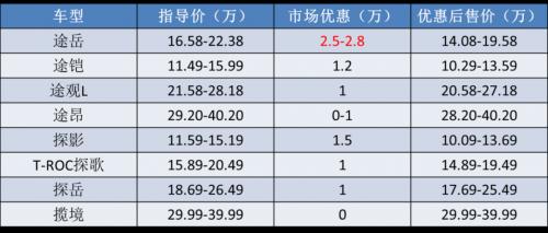 至于途岳,除了有烧95号油(非98号)优势之外,更重要的是它有3万左右市场优惠。在其它大众SUV都把优惠收紧到1万左右时,途岳居然还有近3万优惠。