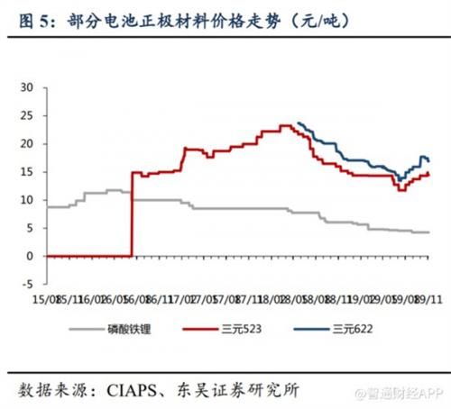 根据上表可知,磷酸铁锂和三元材料各有优劣,由此导致两者有着不同的应用范围:就能源汽车领域而言,磷酸铁锂主要应用于价格敏感性较强的新能源商用车、中低端新能源乘用车;三元材料主要应用于偏重于长续航里程的中高端新能源乘用车。