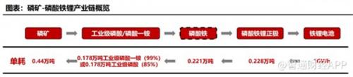 除了磷酸铁锂生产商直接从中受益以外,细挖磷酸铁锂产产业链环节可以发现,上游的磷化工企业亦将从中受益。
