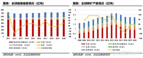 资料显示,2020年,世界磷矿石总储量为710亿吨,总产量为2.23亿吨。世界范围内,摩洛哥和西撒哈拉储备了71%的磷矿石,是世界上最大的磷矿石储备国。中国是磷矿石储量虽然占比不高,但是是最大的生产国,磷矿石生产量占全球40%。2020年中国磷矿石储量/产量为32/0.89亿吨。