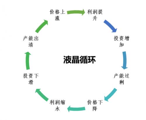 这些年,大家客厅里的电视屏幕越来越大,这就是半导体行业需求、产能与价格共振的例子,也叫做液晶循环(Crystal Cycle)。