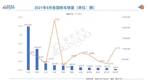 根据AutoForecast Solutions的数据,仅9月份,全球范围内因芯片短缺导致的汽车减产量达200.8万辆。因此,尽管全球终端汽车市场需求保持平稳,但因汽车产品供给不足,大多数汽车市场的销量继续下跌。目前,缺芯是全球车市共同面临的最大障碍,但具体到不同的国家,汽车销量还受其他不同的不利因素影响。