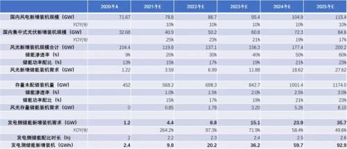 预计对新增风光电源基建而言,结合目前行业政策动态,至2025年渗透率有望达到60%;对存量风光装机规模,预计至2025年渗透率有望达到3%。整体功率配比亦呈不断上升趋势。