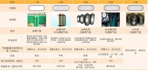 在这四个级别的产品这种,I型、II型产品技术最早被应用,但限于材料限制,储氢密度低,质量重、且安全性较差,无法在35MPa条件下工作,因此已经逐步淡出市场。