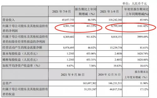 报告显示,2021年7-9月三个月间,中集实现营收450.58亿元,归母净利润超过45亿元,第三季度盈利超过上半年的利润总和。