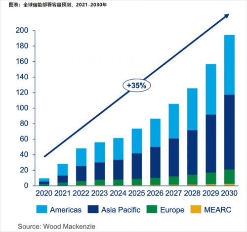 美国将进一步巩固其在储能方面的领先地位,至2030年其累计装机规模将达全球总量的40%,而美国的FTM市场预计将在2030年超过300GWh,年装机量也将达到53GWh。