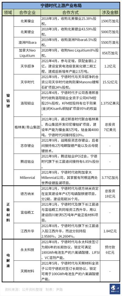 在上游供应链的布局方面,宁德时代并不追求绝对控股,而是力求在更广泛的领域建立影响力。