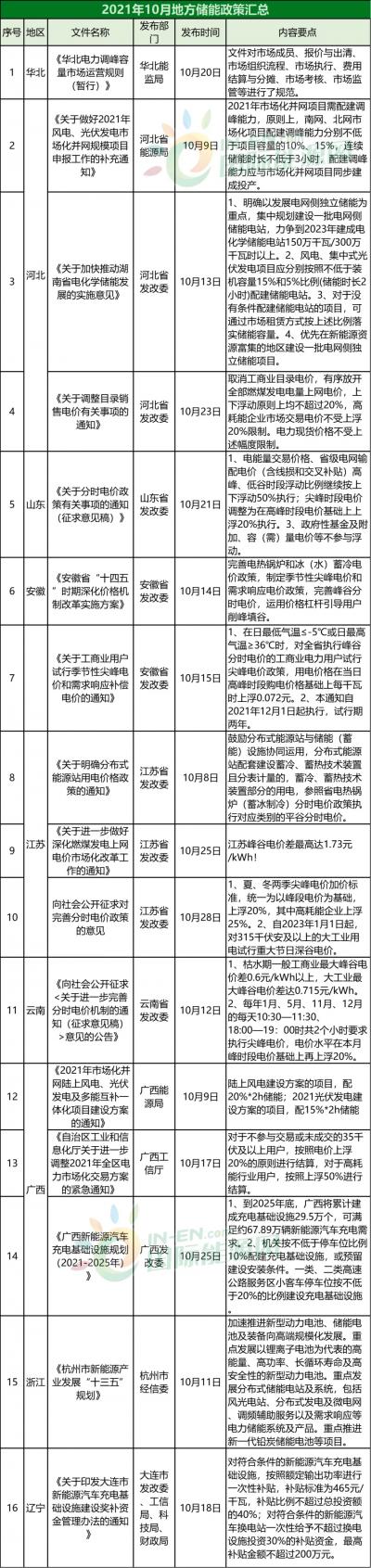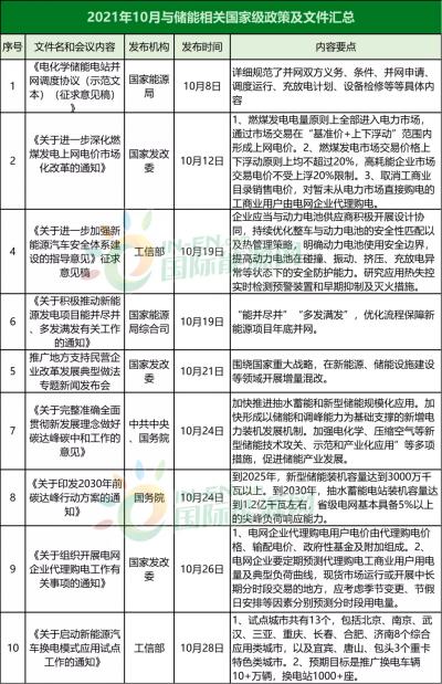 今年以来部委发布的储能相关文件中,多数是有关新能源配置储能、对电价的相关规定、储能参与辅助服务等。在10月份,有一新情况出现,那就是9月开始在多地发生的缺电引发了一系列有关煤电和电价的政策出台,而这些政策都将对储能领域产生很大的影响。