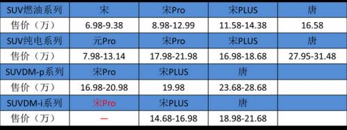 其中,比亚迪宋家族由宋经典版、宋Pro、宋PLUS、宋MAX四款车型组成,其中每款车型又有燃油版、插电版和EV版本。