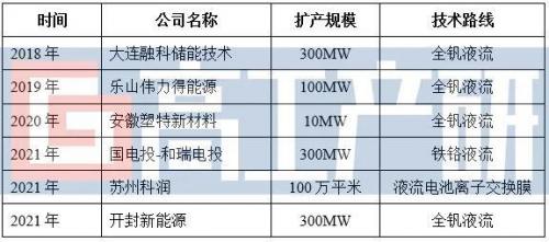 2021年国内主要液流电池产业链扩产项目(部分)