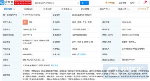 11月11日,企查查App显示,近日,武汉比亚迪汽车有限公司发生多项工商变更,王传福退出法定代表人及董事长,由何龙接任;同时公司经营范围新增电池制造、销售;电子专用材料制造、销售;新能源汽车废旧动力蓄电池回收及梯次利用等。该公司成立于2014年12月,注册资本1亿人民币,由比亚迪汽车工业有限公司全资持股。