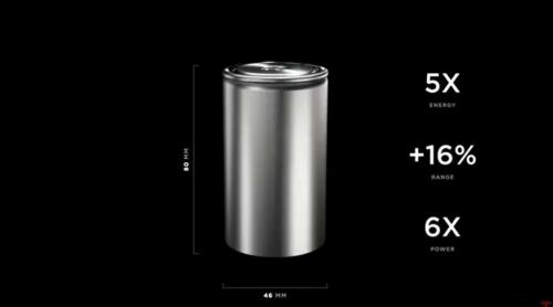 据马斯克介绍,全新的4680型无极耳电池,能量较之前的电芯规格提升5倍,里程提高16%,输出功率提升6倍。