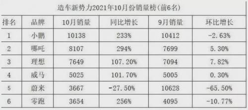 从目前已经公布的销售数据看,10月份新势力格局再次发生剧变。其中: