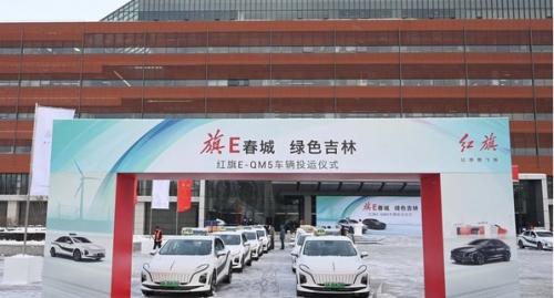 11月11日,长春,银装素裹,“旗E春城绿色吉林--红旗E-QM5换电车型投运仪式”在一汽集团公司总部隆重举行。