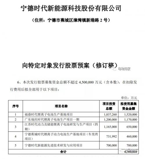 从具体项目来看,宁德蕉城时代锂离子动力电池生产基地项目(车里湾项目)募资额从54亿元下调至46亿元,宁德时代湖西锂离子电池扩建项目(二期)的31亿元募资额及用于补充流动资金的93亿元募资额则被剔除。
