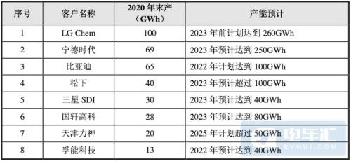 目前,全球锂电巨头产能均在加速扩张,根据全球主要锂电池厂商产能规划,到2025年之前,恩捷股份主要客户预计锂电池的整体产能将超过920GWh。假设按照1GWh锂电池对应隔膜需求1,500万平方米估算,恩捷股份现有客户在2025年之前将有每年超过138亿平方米锂电隔膜需求。