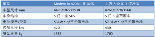 不过,编辑对新车型进行了解的时候却发现,这样一款紧凑型SUV车型,却堪称同级别车型之中轻量化做的最好的一款。以数据来看,Modern in最低配车型采用了53kW・h的三元锂电池,并配备了最大功率120kW的动力电机,但其整备质量却只有1535公斤。对比之下,上汽通用的两厢小车ID.3在动力配置相仿的情况下,整备质量却达到了1760公斤,差了200多公斤!