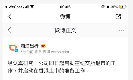 12月3日,滴滴出行在微博表示,经认真研究,公司即日起启动在纽交所退市的工作,并启动在香港上市的准备工作。据知情人士透露,滴滴出行的目标是在明年3月左右在香港提交IPO招股书。