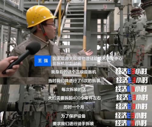 这个占地两万多平方米的超大空间就是储能系统的车间。这里密布着管道和容器,乍一看感觉就像进入了化工厂。不过这里的工作人员告诉记者,系统的工作过程只是一个纯粹的物理过程,没有化学反应,因此也就没有需要排弃的废物。