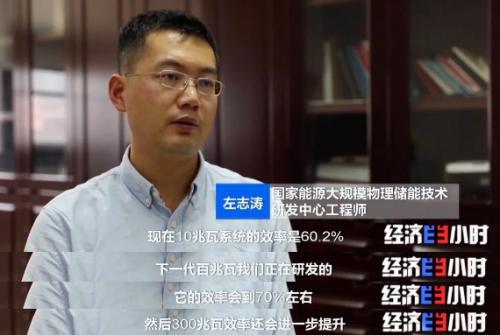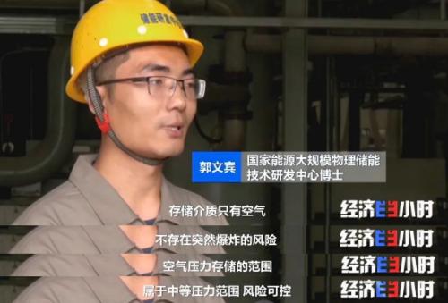 究竟什么是压缩空气储能系统?它又是如何运作的呢?原来,这个系统分成两个环节,储能过程和释能过程。在储能时,通过压缩机将空气压缩并进行存储;在需要释放电能时,再将高压空气释放,带动发电机发电。 目前,这套10兆瓦先进压缩空气储能系统,一天能发40000度电,相当于3000户普通家庭一天的用电量。